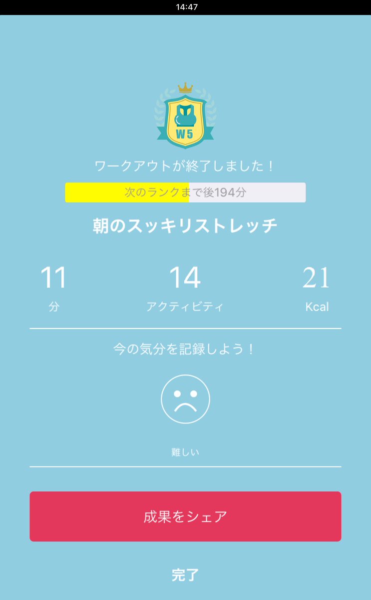 昼前にエクササイズができなかったので、食後のお茶を飲んでから、久しぶりにエクササイズアプリを開いてストレッチ。