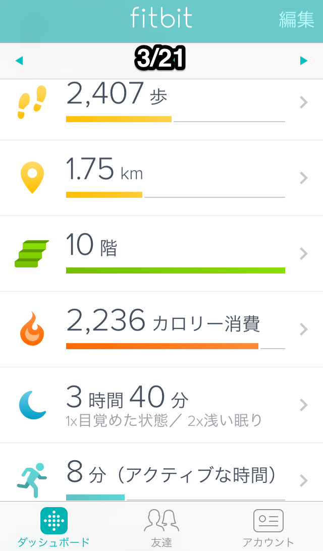 3/21の活動 Posted on 2014年3月22日2014年3月22日 By kenkoh_houshiPosted in 体重変動と活動記録 家で作業。夕方丘の上のマルエツまで買い出し。 記録は… 【送料無料】 FITBIT ワイヤレス活動量計&睡眠計 「Fitbit One」 FB103BY-JP バーガンディ (FB103BYJP) posted with カエレバ ソフマップ楽天市場店 楽天市場で検索 Amazonで検索 Yahooショッピングで検索 ヤフオク!で検索 7netで検索 ベルメゾンで検索 セシールで検索 価格.comで検索 Fitbit 無料 Fitbit, Inc. posted with ポチレバ 共有:TwitterFacebookLinkedIn ◆関連記事(こちらの記事も読んでみてください) しばらくお待ちくだされ.