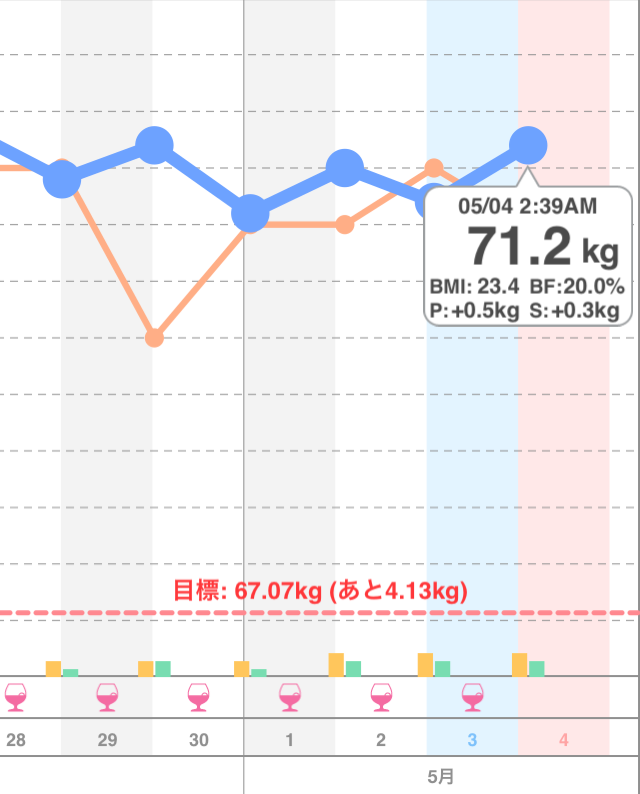 5/3の体重 Posted on 2014年5月4日2014年5月4日 By kenkoh_houshiPosted in 体重変動と活動記録 体重は… 昨日の1時54分から0.5kg増。現在71.2kg。体脂肪率20%。BMIは23.4。 シンプル・ダイエット 〜 記録するだけ!かんたん体重管理 〜 無料 Takayoshi Kurachi posted with ポチレバ 共有:TwitterFacebookLinkedIn ◆関連記事(こちらの記事も読んでみてください) 4/3の体重 11/24の体重変動 3/23の体重 10/14の体重変動