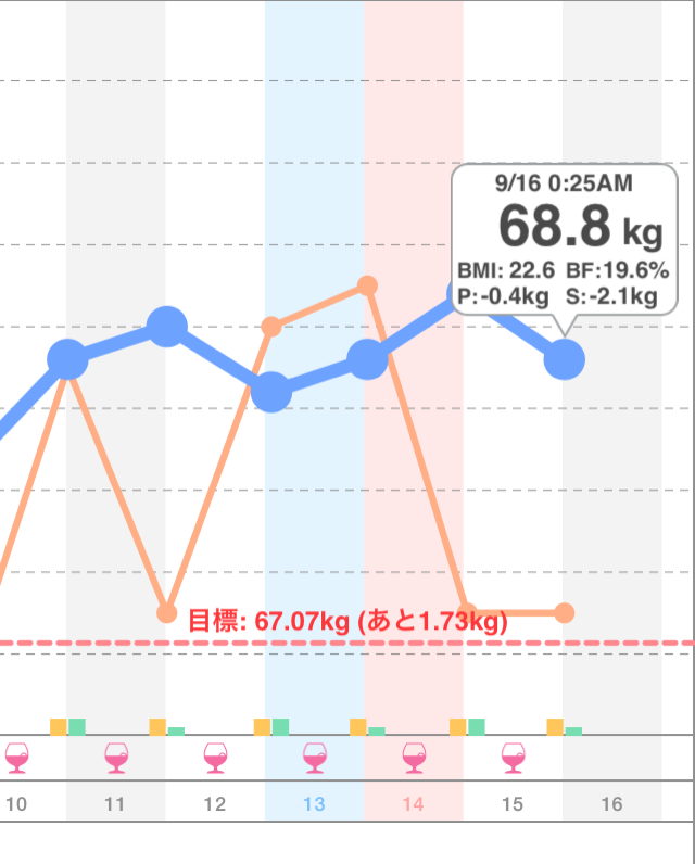 9/15の体重 Posted on 2014年9月16日2014年9月16日 By kenkoh_houshiPosted in 体重変動と活動記録 体重は… 昨日の0時57分から0.4kg減!現在68.8kg。体脂肪率19.6%。BMIは22.6。 シンプル・ダイエット 〜 記録するだけ!かんたん体重管理 〜 無料 Takayoshi Kurachi posted with ポチレバ 共有:TwitterFacebookLinkedIn ◆関連記事(こちらの記事も読んでみてください) 7/15の体重 8/15の体重 4/15の体重 9/9の体重
