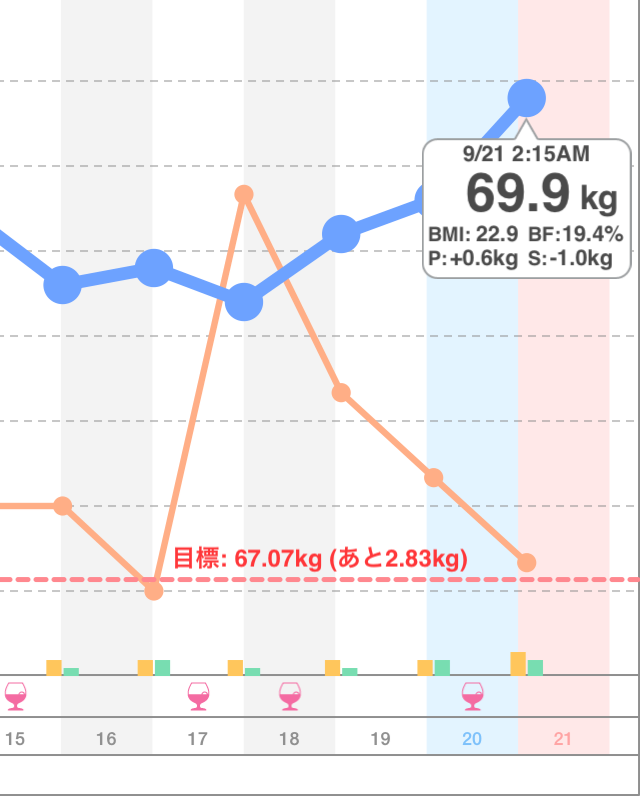 9/20の体重 Posted on 2014年9月21日2014年9月21日 By kenkoh_houshiPosted in 体重変動と活動記録 体重は… 昨日の1:50分から0.6kg増。現在69.9kg。体脂肪率19.4%。BMIは22.9。 シンプル・ダイエット 〜 記録するだけ!かんたん体重管理 〜 無料 Takayoshi Kurachi posted with ポチレバ 共有:TwitterFacebookLinkedIn ◆関連記事(こちらの記事も読んでみてください) 8/20の体重 7/20の体重 4/20の体重 5/20の体重