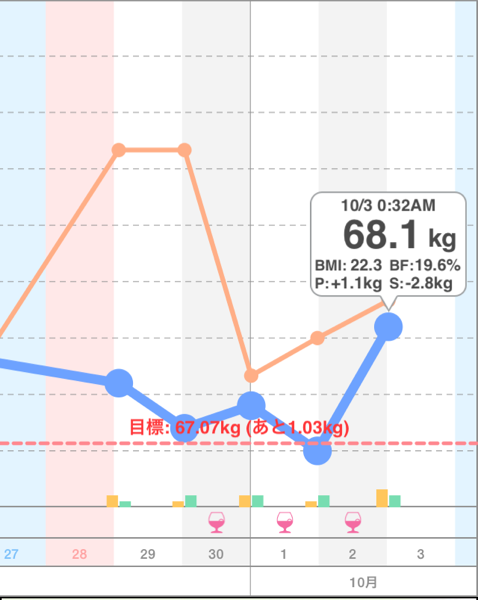 10/2の体重 Posted on 2014年10月3日2014年10月3日 By kenkoh_houshiPosted in 体重変動と活動記録 体重は… 10月1日23:34分から1.1kg増。現在68.1kg。体脂肪率19.6%。BMIは22.3。 シンプル・ダイエット 〜 記録するだけ!かんたん体重管理 〜 無料 Takayoshi Kurachi posted with ポチレバ 共有:TwitterFacebookLinkedIn ◆関連記事(こちらの記事も読んでみてください) 9/2の体重 8/2の体重 6/2の体重 7/2の体重