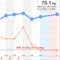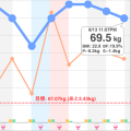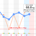 22時間前から0.1kg増。現在67.9kg。体脂肪率19.5%。BMIは22.3。