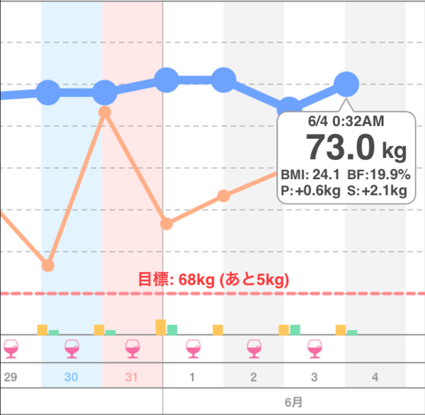 6/3の体重は現在73.0kg。体脂肪率19.9%。BMIは24.1。1,437歩=1.0km。 Posted on 2015年6月4日2015年6月4日 By kenkoh_houshiPosted in 体重変動と活動記録 現在73.0kg。体脂肪率19.9%。BMIは24.1。雨の中を昼のおかずを買いに出ただけ。 シンプル・ダイエット 〜 記録するだけ!かんたん体重管理 〜 無料 Takayoshi Kurachi posted with ポチレバ 共有:TwitterFacebookLinkedIn ◆関連記事(こちらの記事も読んでみてください) 5/17の体重は現在73.0kg。体脂肪率19.5%。BMIは24.1。6,648歩=4.7km。 5/22の体重は現在73.4kg。体脂肪率19.7%。BMIは24.2。10,374歩=7.4km。 5/31の体重は現在73.1kg。体脂肪率19.6%。BMIは24.1。9,333歩=6.7km。 6/1の体重は現在73.1kg。体脂肪率19.8%。BMIは24.1。歩=ほぼゼロ。