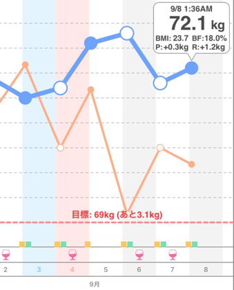 9/7は台風13号が接近しているというわりにはいい天気でした Posted on 2016年9月8日2016年9月8日 By kenkoh_houshiPosted in 記録 この記事をざっくり説明すると…… 蒸し暑さは変わらずですが。 本日の歩数 2510歩。 本日の体重と体脂肪率 昨日の3時05分から0.3kg増。現在72.1kg。体脂肪率18%。BMIは23.7。 本日のご機嫌 3分フィットネス -無料でエクササイズ- 開発元:Ateam Inc. 無料 posted with アプリーチ 共有:TwitterFacebookLinkedIn ◆関連記事(こちらの記事も読んでみてください) 8/18は湿度か高くてうんざりでした 本日の記録 2016/08/08 本日の記録 2016/08/09 8/15は台風の前の晴れ間だったのかな