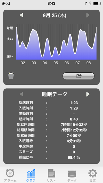 眠りが浅い模様。 不眠尺度は4。 不眠尺度とは…