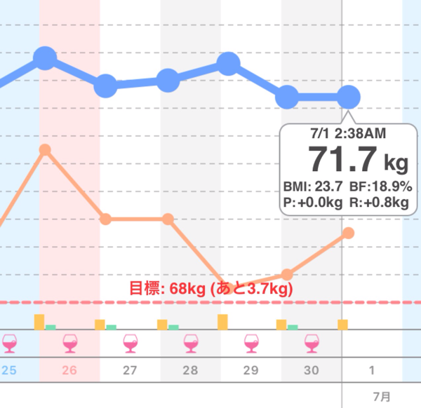 暑いと思ったら豪雨とともにすす風。外出中じゃなくてよかった。 本日の歩数 5048歩。 本日の体重と体脂肪率 昨日の2時19分から0.4kg減!現在71.4kg。体脂肪率18.1…